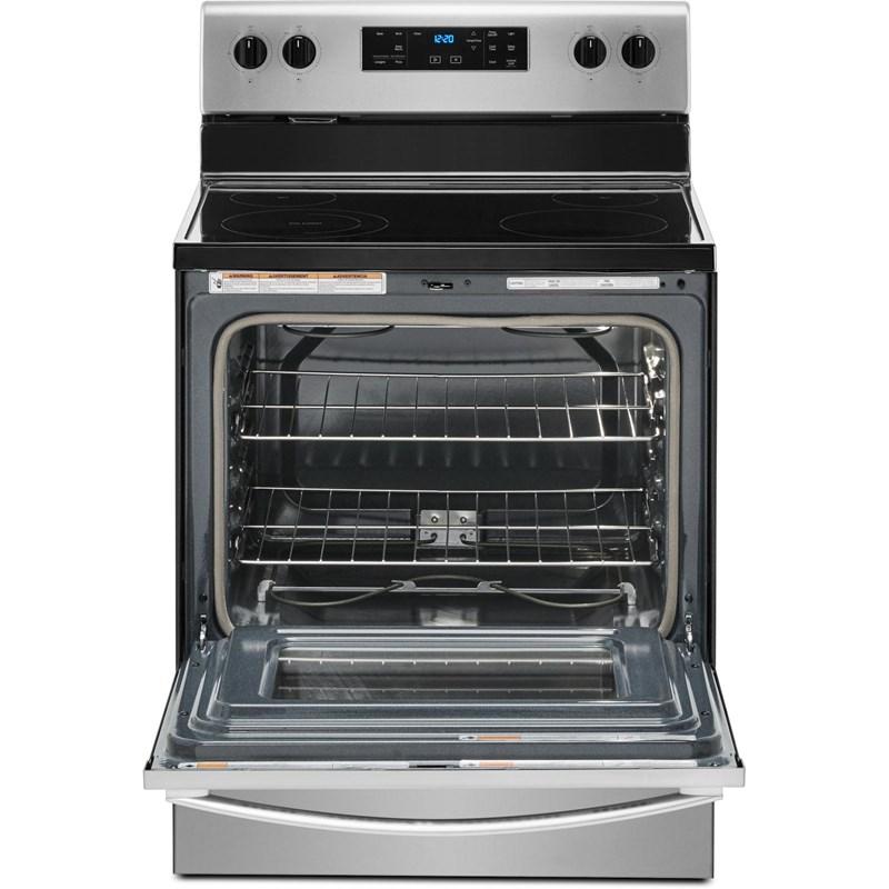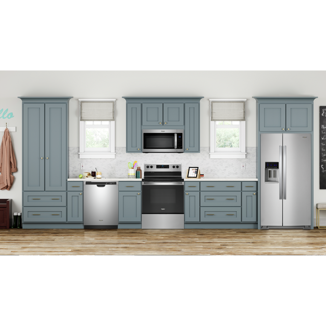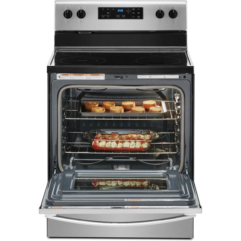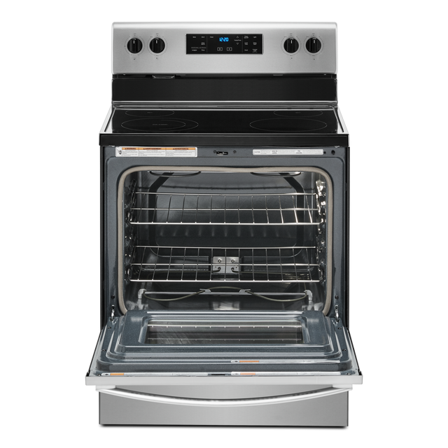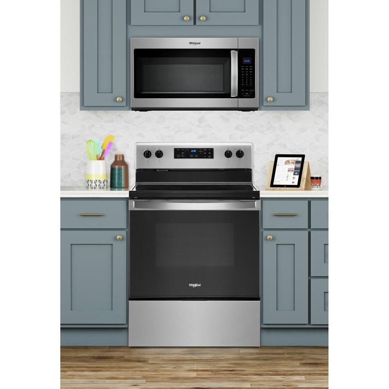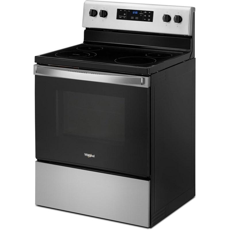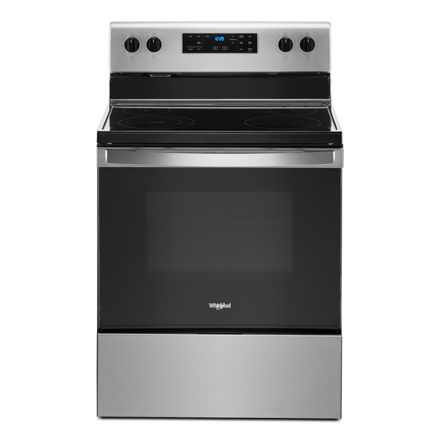 This Whirlpool® electric range with a dual element stove top helps you get dinner to the table. Skip preheating for favorites like pizza with Frozen Bake™ technology. This self cleaning oven also prevents cooked food from getting cold with the Keep Warm setting. Closed door broiling helps keep the kitchen comfortable.